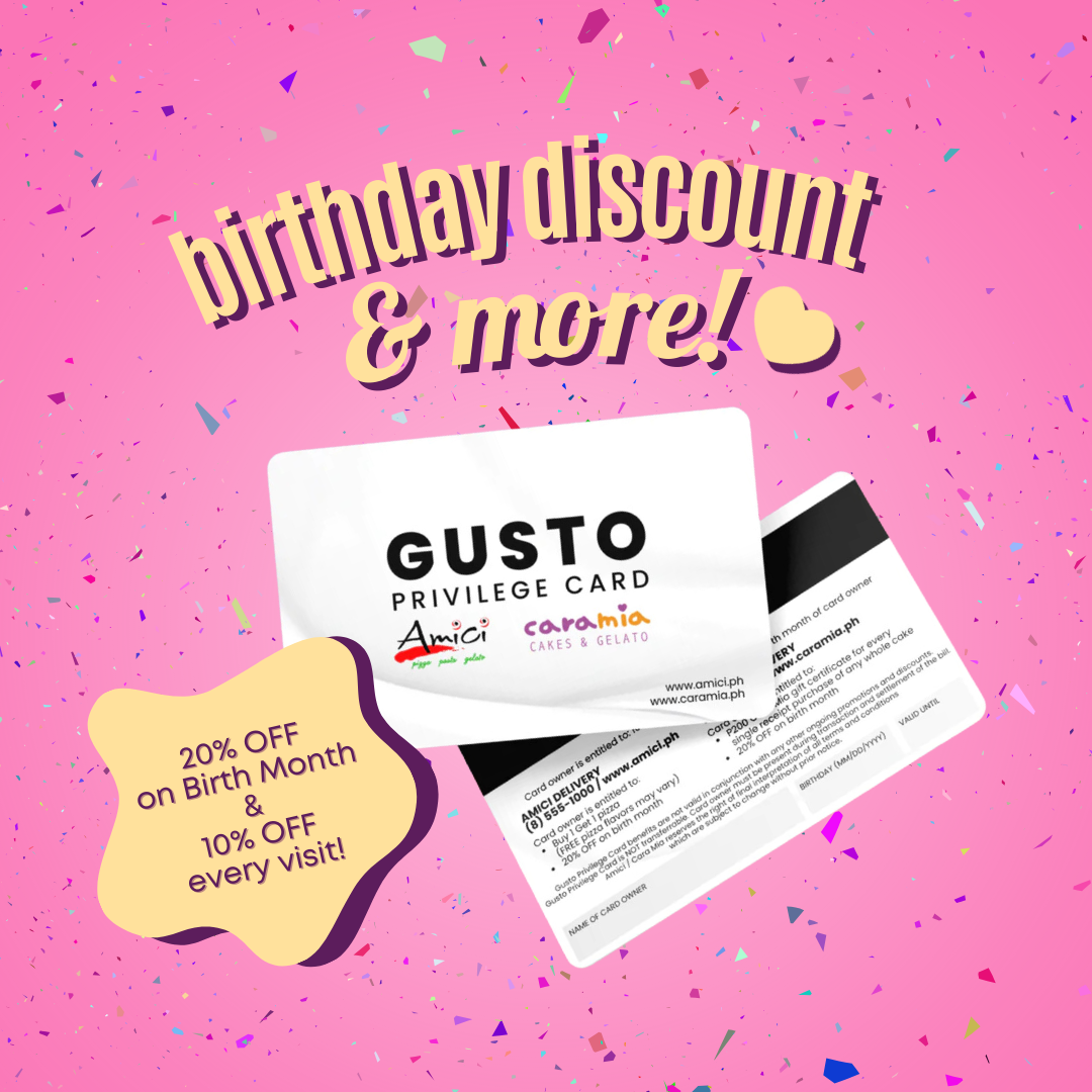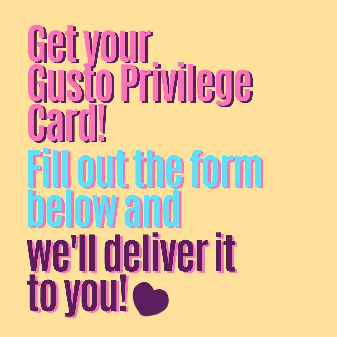 1. The Gusto Privilege Card is valid for 1 year upon the date of purchase